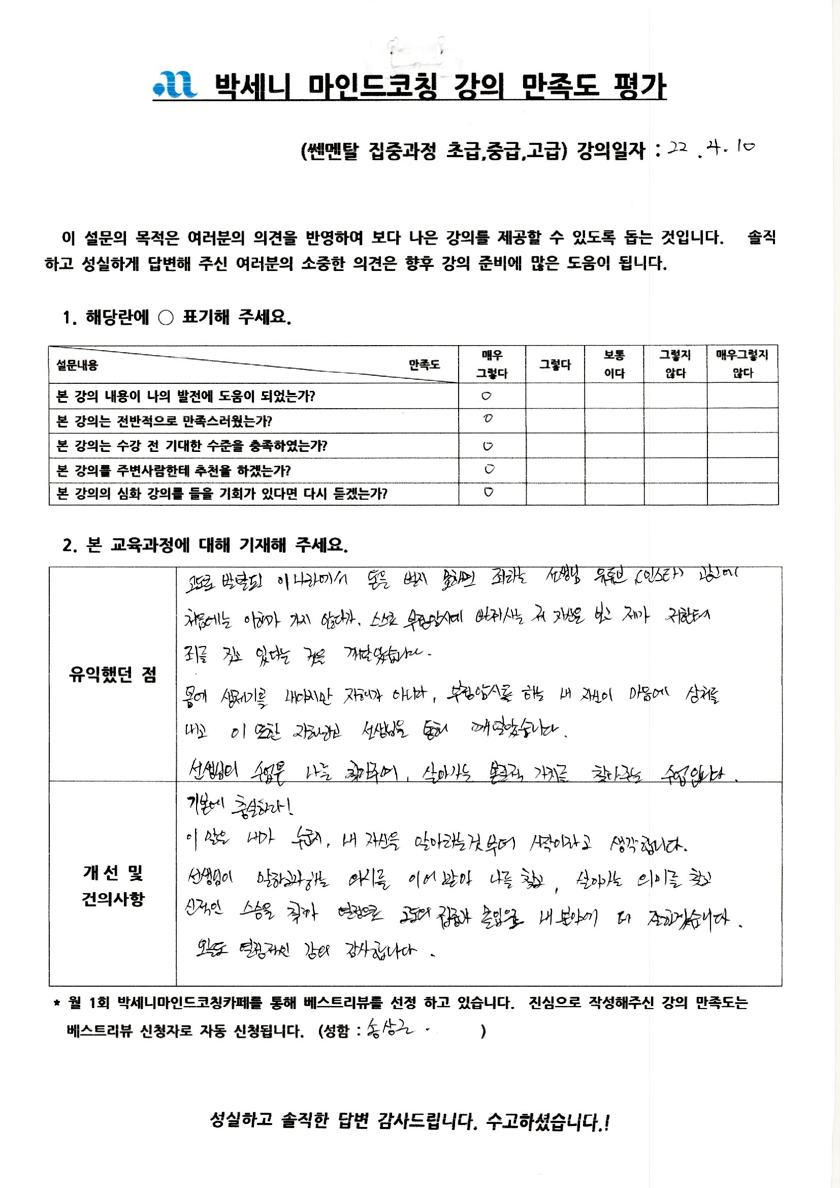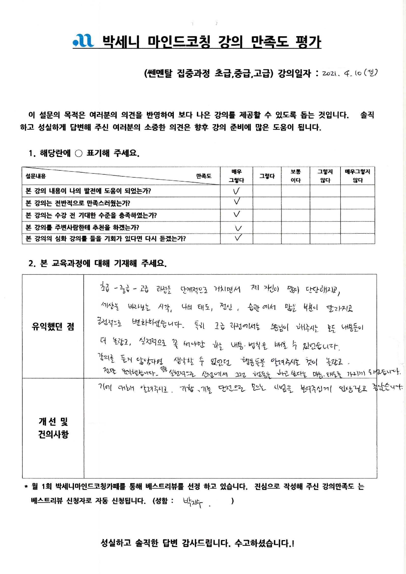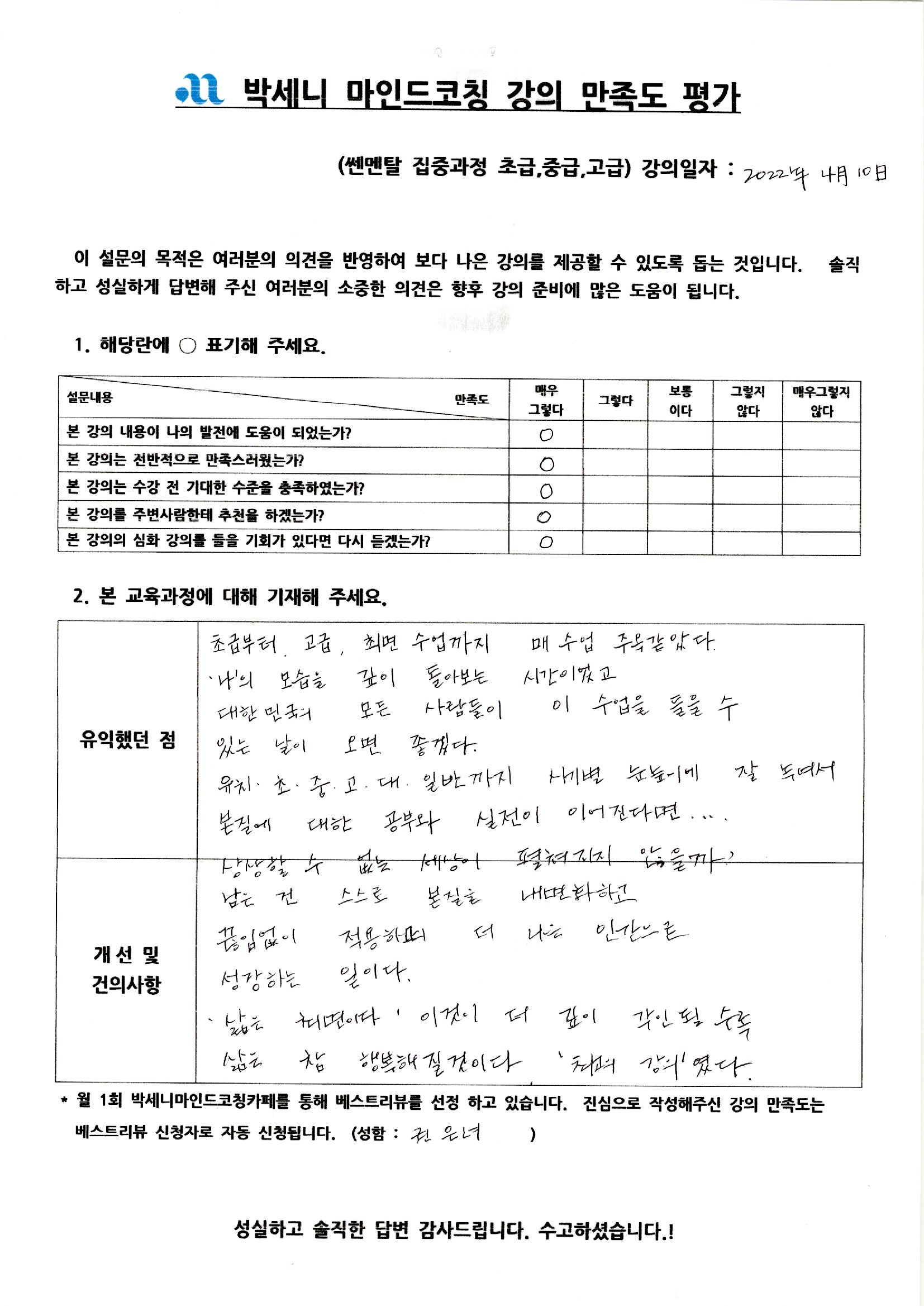 '최고의 강의였다'